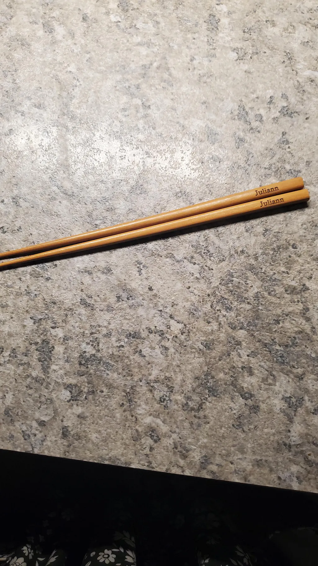 Clean name characters engraved onto good quality chopsticks. Perfect personalised gofts.