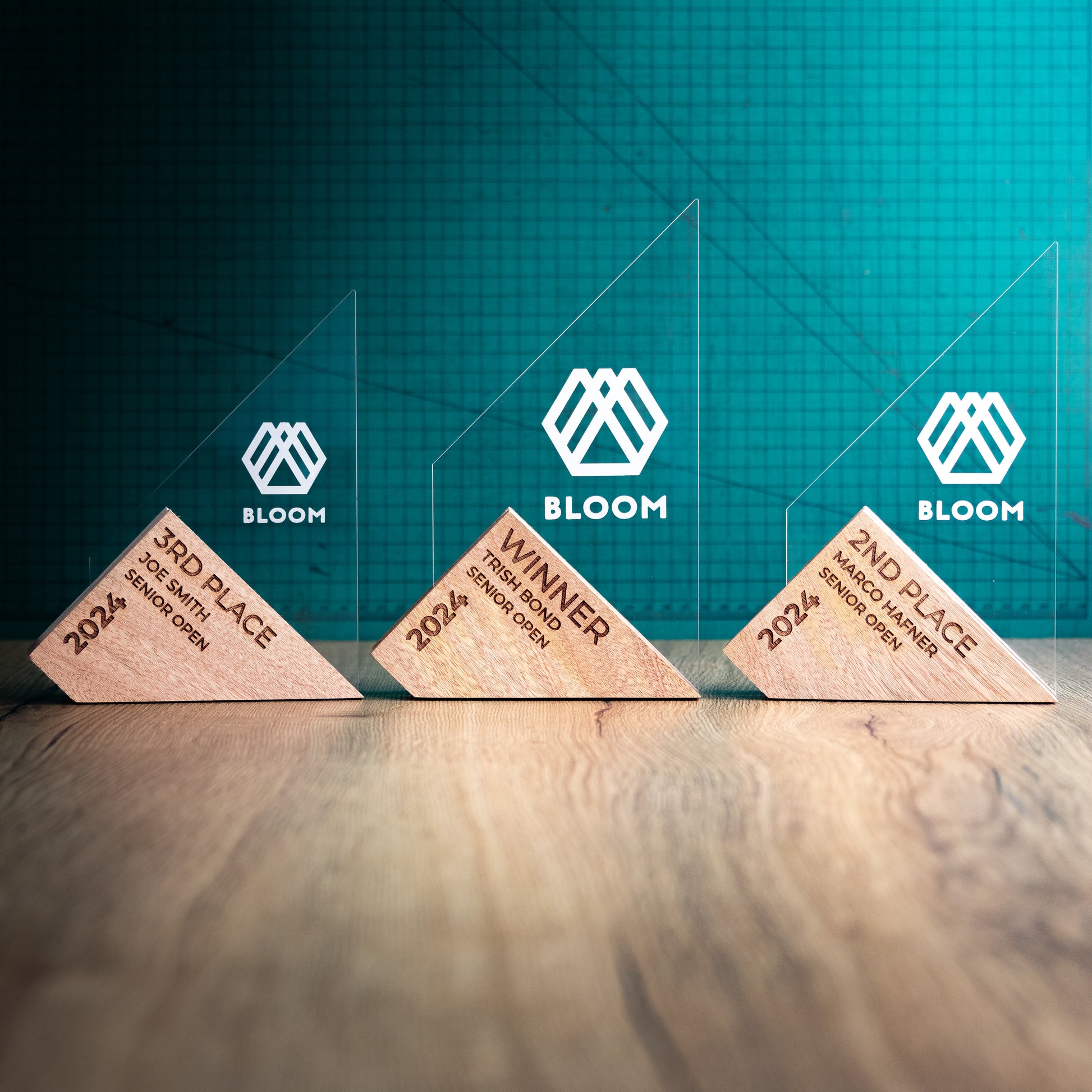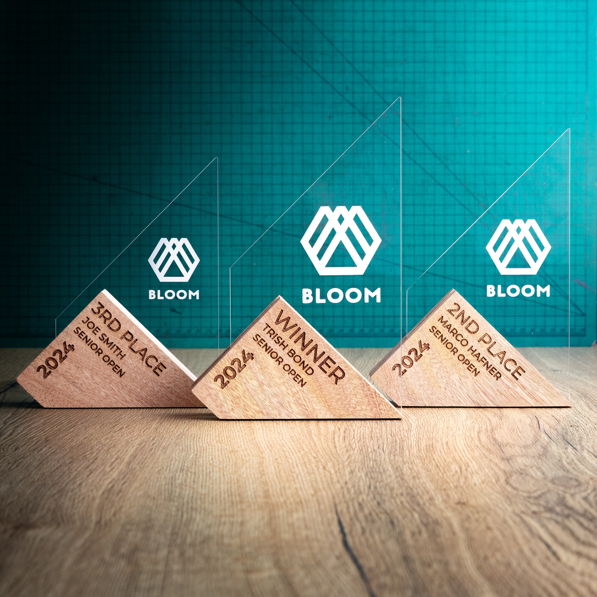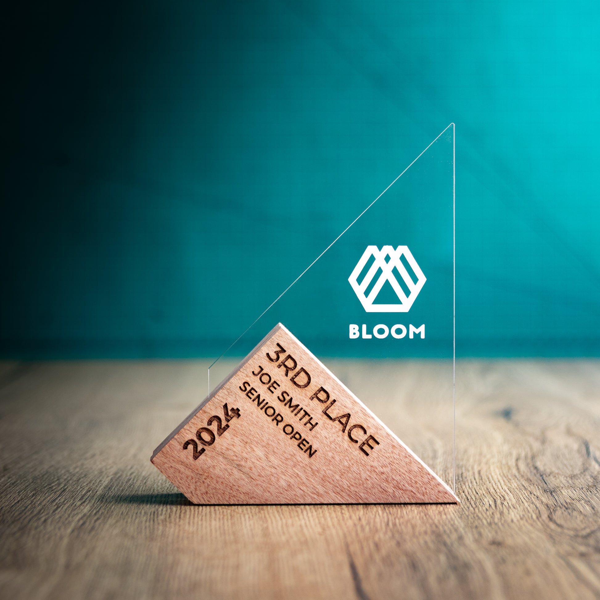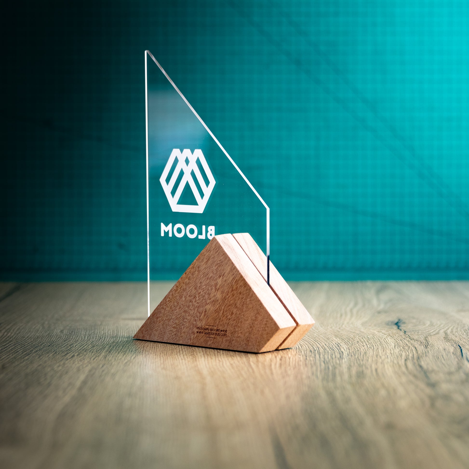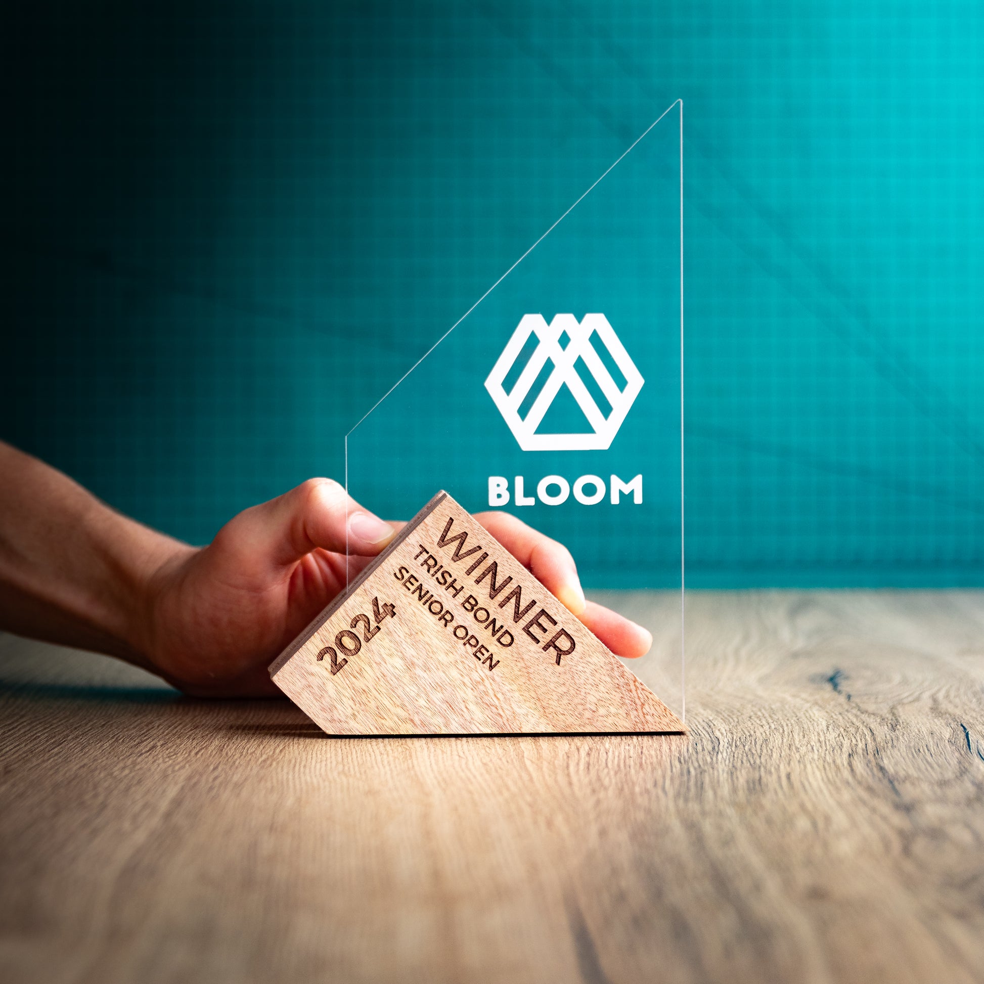 Designed for sports, creative industries, or high-level business awards, the Genoa Trophy is fully customisable, with engraving options that include logos, dates, names, and more. Every trophy is handcrafted in South Wales using recycled Perspex and responsibly sourced wood.
