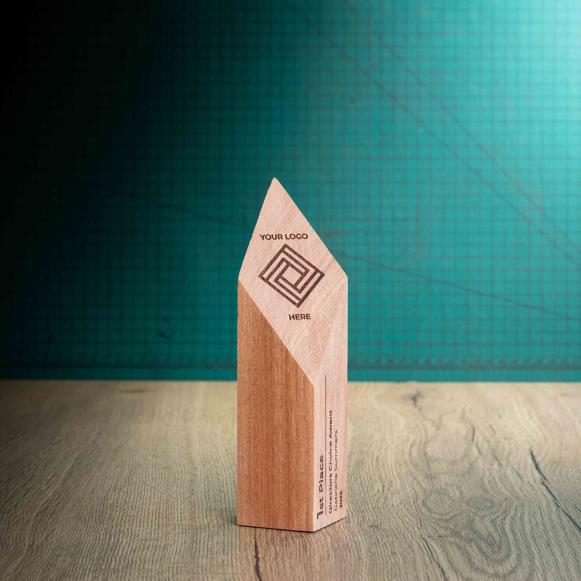 Crafted from sustainably sourced Sapele wood in our South Wales workshop, each award carries a rich, reddish-brown tone and fine grain unique to every piece. Laser-engraved with precision, your logo, award title, and recipient details are brought to life with depth and clarity, ensuring every Shard becomes a personal keepsake.
